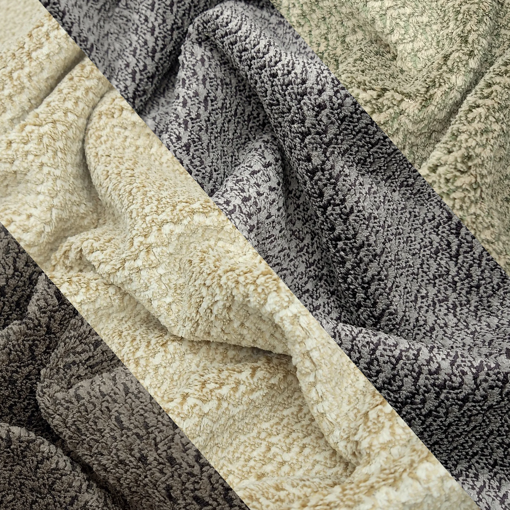 This collection of fabrics has a soft touch pile texture. It is a perfect alternative to velvet for someone who is looking for a similar yet more modern smooth fluffy feeling for upholstery fabric. Welcome in the comfortable relaxing energy that makes a home feel like home.